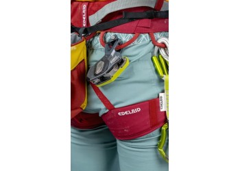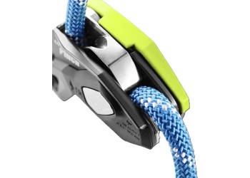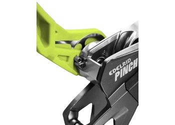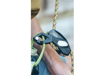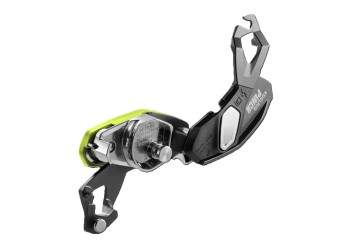 The PINCH – une expérience inédite de l’assurage avec le PINCH, un nouvel assureur polyvalent avec blocage assisté pour l’escalade sportive, la grande voie et l’accès sur corde. Le PINCH est le premier appareil sur le marché à pouvoir être connecté directement à l’anneau central du baudrier. Grâce à son positionnement bas et proche du corps, il n’est pas nécessaire de bloquer le PINCH pour donner du mou, ce qui permet de tenir en permanence la corde côté freinage avec les quatre doigts. De plus, le système d’assurage compact offre une plus grande portée, ce qui permet à l’assureur·euse de donner 20 à 30 cm de mou en plus en une seule fois. La progression linéaire de la corde dans les gorges de freinage avant en acier évite que la corde ne vrille en descente ou en rappel. En plus d’actionner la manette de descente, il est possible de contrôler la vitesse en exerçant une pression de la main côté freinage, ce qui contribue à un meilleur contrôle de la corde côté freinage, notamment avec des cordes fines et souples. La fonction anti-panique apporte un plus en matière de sécurité, et pas seulement pour les débutant·e·s. Le deuxième niveau de freinage intégré, qui se déclenche en tirant plus sur la manette de descente, est une spécificité permettant une descente contrôlée lors de l'assurage de personnes particulièrement légères ou dans des systèmes présentant un frottement important de la corde. Les personnes expérimentées peuvent désactiver la fonction anti-panique de manière permanente au moyen d’une vis fournie avec l’appareil. Un autre avantage : utilisé en grande voie, le PINCH est le seul appareil du marché à pouvoir être connecté au relais dans quatre directions différentes, par paliers de 90°. Ainsi, la manette de descente peut toujours être placée dans une position permettant de la manipuler librement.